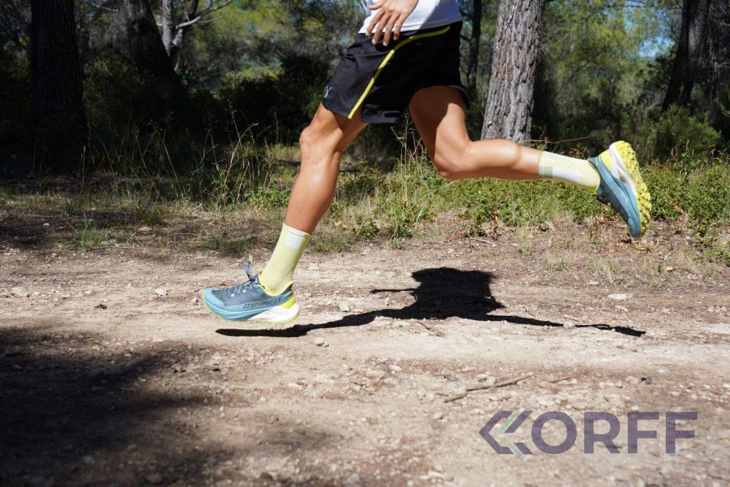 À la foulée, on sent un léger rocker qui invite à dérouler. La mousse “supercritical” renvoie proprement sans rebond trampoline, le combo confort/contrôle est net.