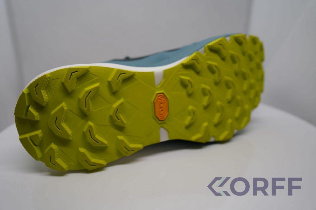 Vibram Megagrip + Traction Lugs 4 mm : mordant sur roches mouillées, racines et boue légère; freinage rassurant en descente.