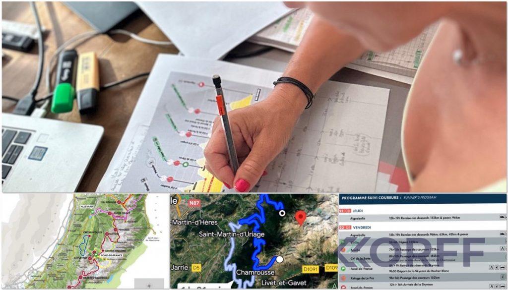 « J’ai pour habitude d’imprimer le profil en format A3 et d’inscrire toutes les informations relatives au temps de passage du coureur, mes temps de trajet et d’autres remarques afin de m’y référer le jour J. Un vrai « doudou » d’assistance » nous explique Sandra.