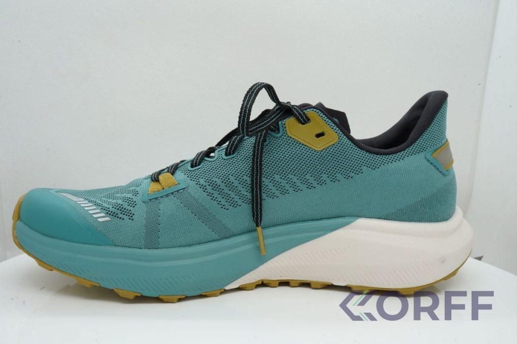 Enfilage facile, tige souple, tenue immédiate du médio-pied : la TRAIL met en confiance. Sur route, l’amorti filtre bien les chocs sans s’affaisser. En sentier roulant, la transition talon–avant-pied reste naturelle, et le pied demeure guidé sans contrainte. Le dynamisme n’est pas celui d’un racer, mais la relance est franche et prévisible. En bref, une vraie gravel qui impose par son style.