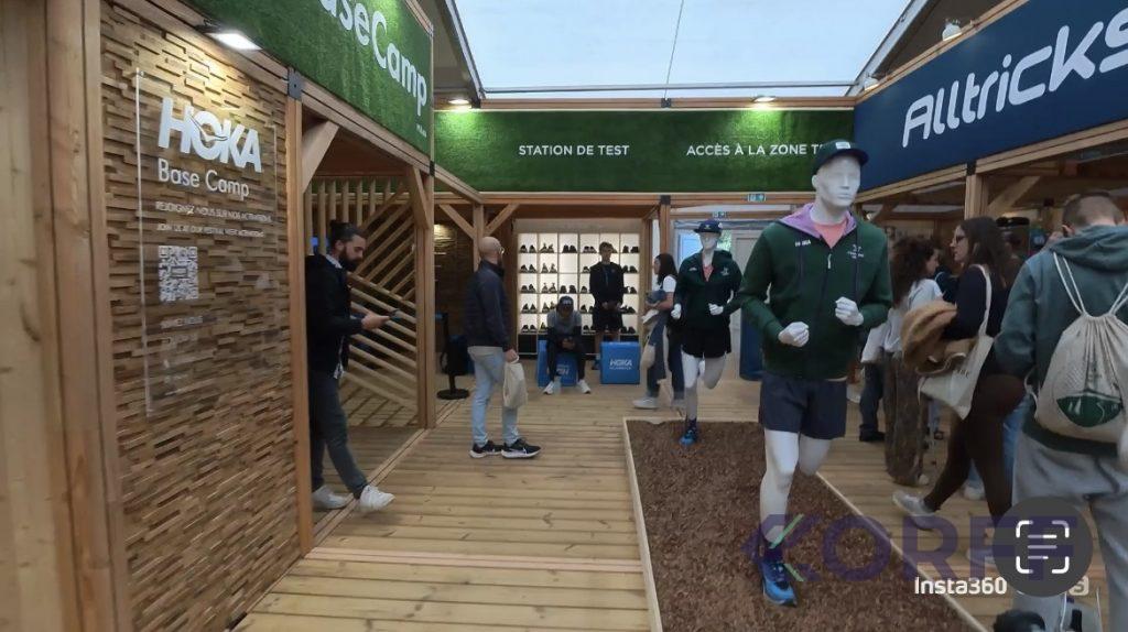 Les grands noms de l’équipement bien visibles, avec HOKA en partenaire phare.