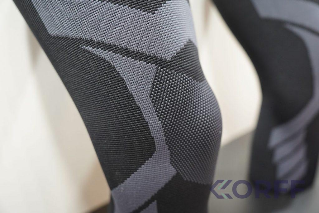 Dès le premier regard, la qualité se dégage. Assez épaisse (elle m’a rappelé mes fidèles combinaisons de plongée en néoprène !), elle ne présente aucune couture apparente, un détail qui promet d’éviter frottements et irritations. L’ajout d’une bande de silicone antidérapante en haut de la cuisse est une excellente idée pour garantir un maintien sans faille pendant l’effort. Un problème récurrent avec les genouillères classiques, que Flytex semble avoir parfaitement identifié et corrigé, nous permettant enfin de courir l’esprit libre !