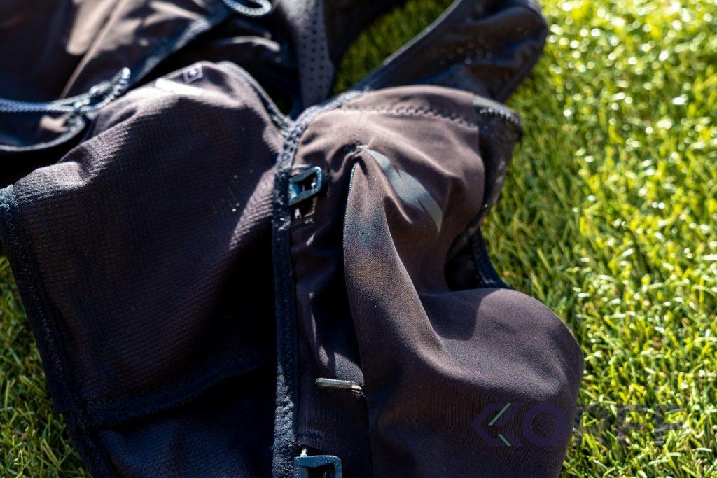 - Deux poches avant prévues pour des flasques de 250 ml → hydratation accessible en courant, pas besoin de s’arrêter.