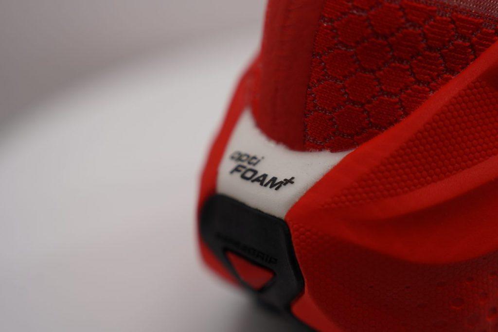 Dès l’enfilage, on ressent un gros volume d’amorti sous le pied. La chaussure inspire immédiatement confiance.