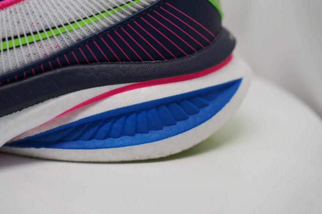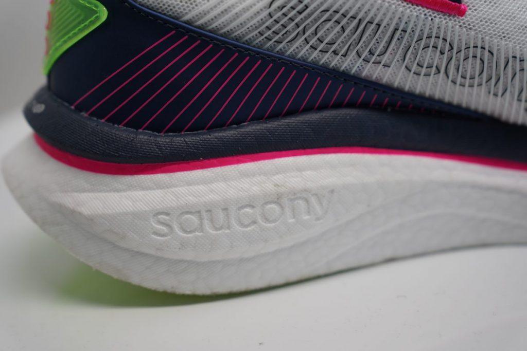 La chaussure conserve toutefois une vraie dynamique à la foulée, ce qui peut sembler paradoxal pour un modèle d’entraînement. En réalité, Saucony a repris la base de l’Endorphin Speed 5, en retirant simplement la plaque carbone. Résultat : un modèle plus naturel, plus souple, mais toujours joueur.
