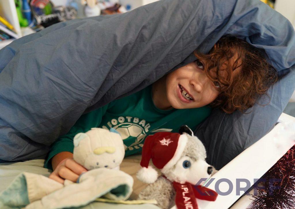 On dort déjà depuis un moment avec des oreillers Wopilo, on a donc fait appel à la marque pour nous donner un coup de pouce et nous aider à lui faire accepter un oreiller tout neuf… et tant qu’à faire, l’idée de renouveler toute sa literie pour qu’il dorme enfin dans de bonnes conditions.