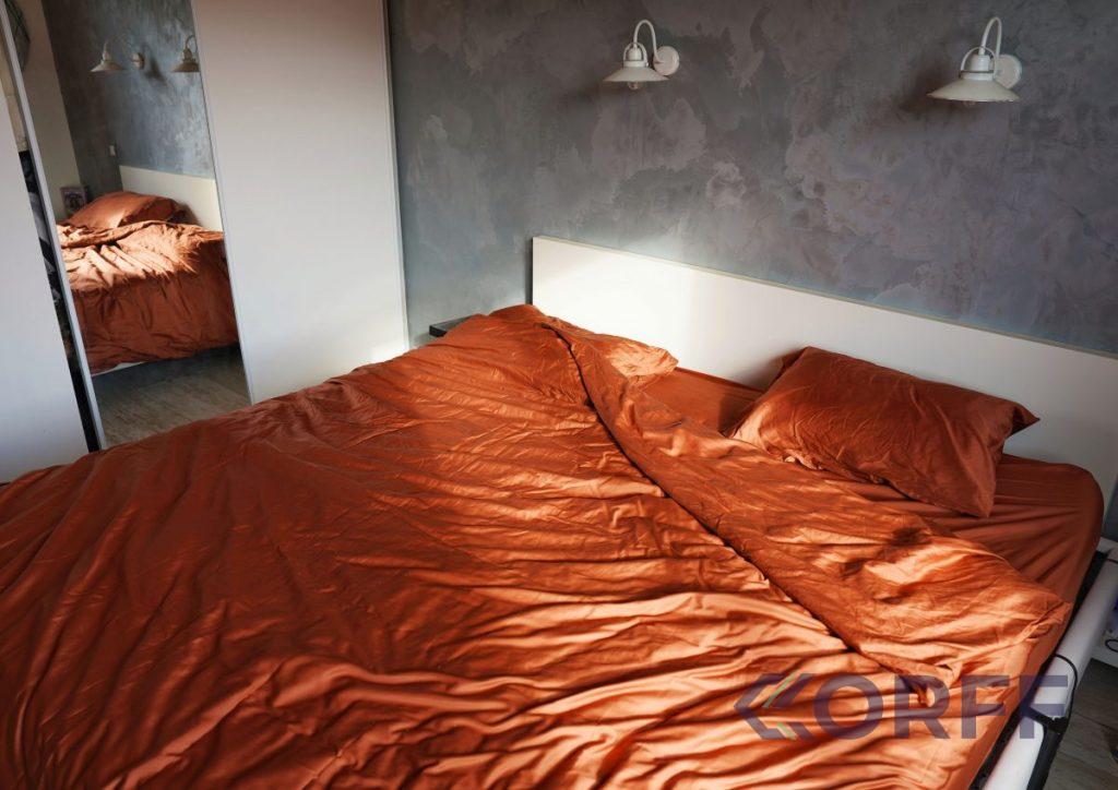 Nous avons choisi la parure en satin de coton bio certifié GOTS, couleur Terracotta.